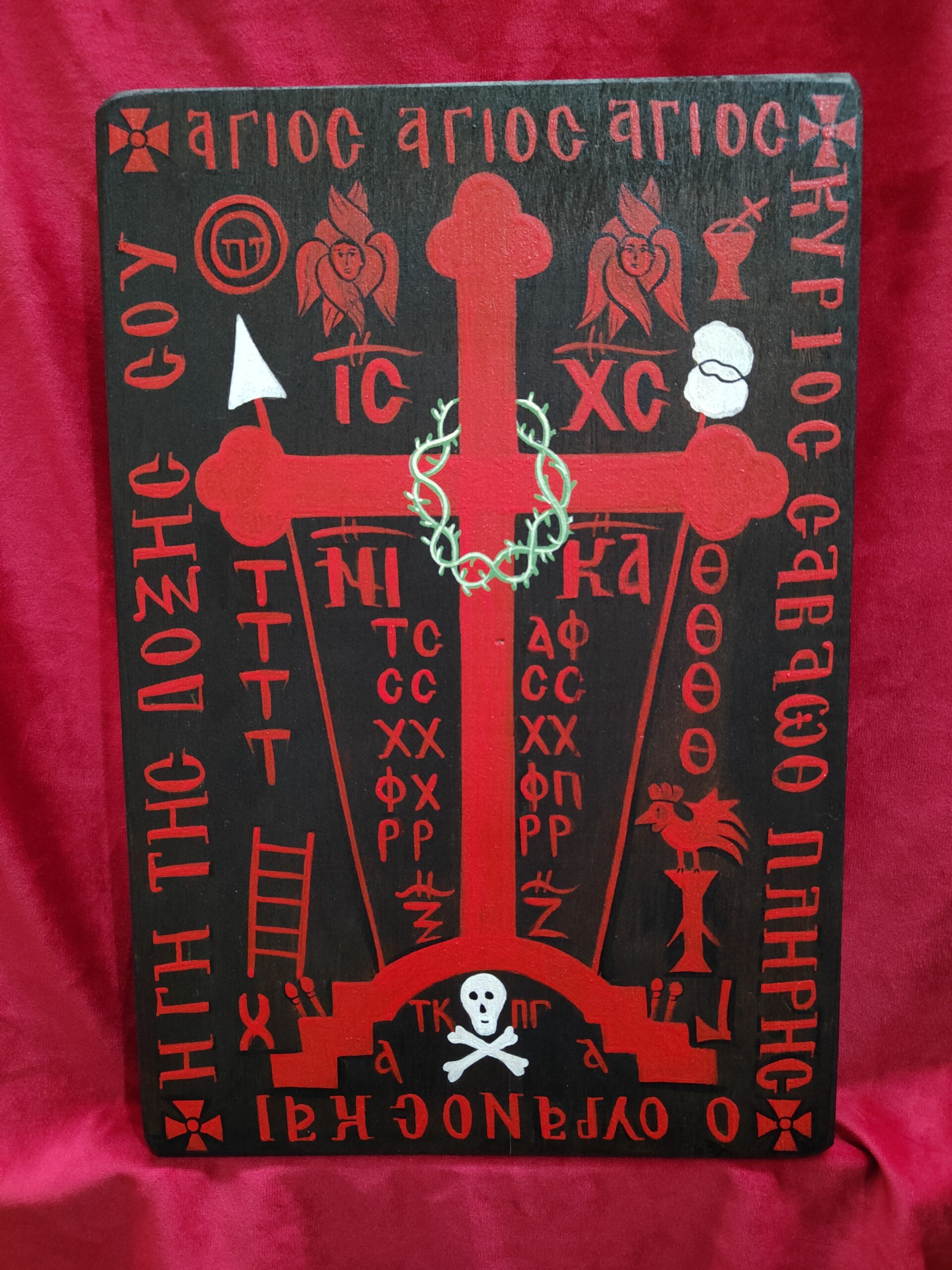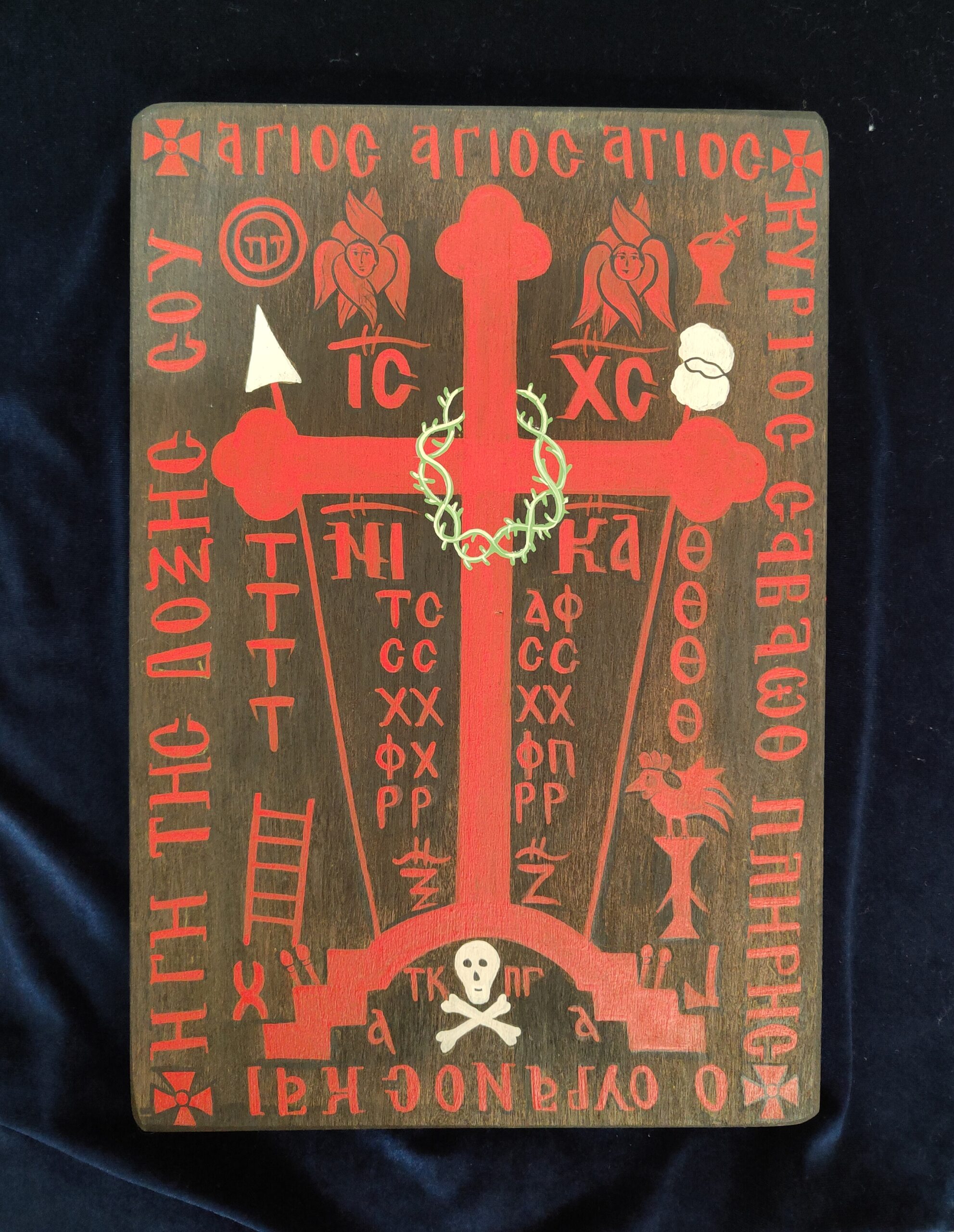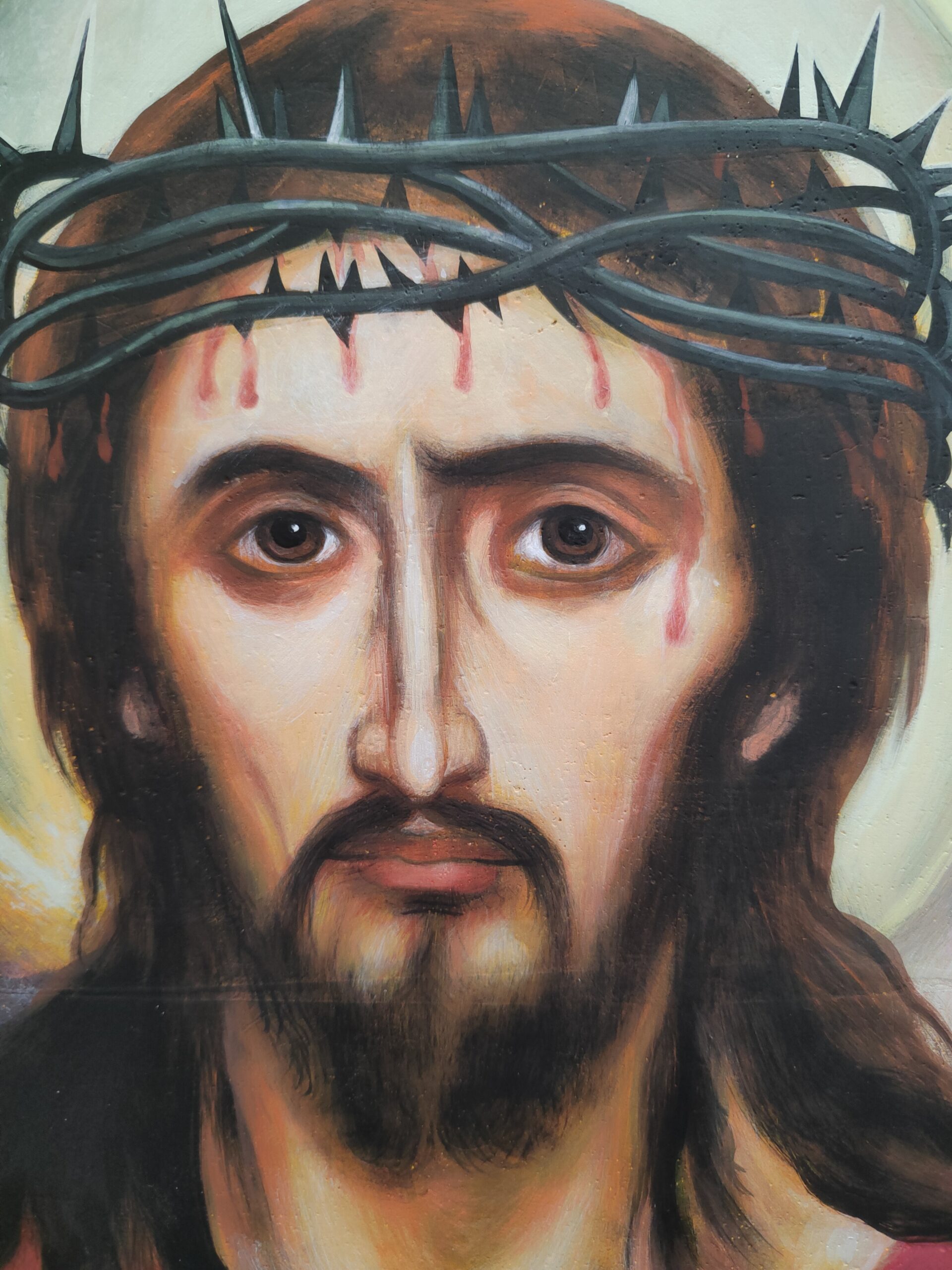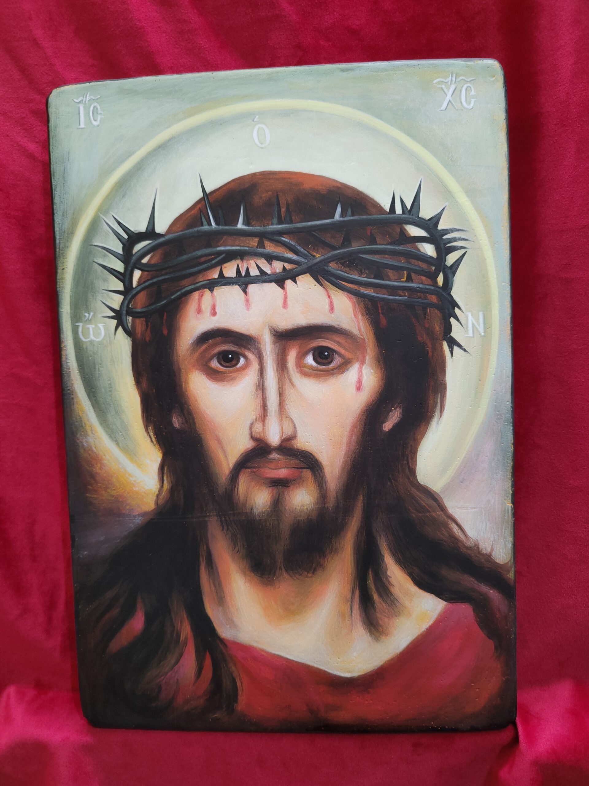 The face of God Icon. The icon is painted by hand, with egg tempera and pigments, on a flat board. The icon was also written on the back of the board, the solitary or angelic shape. The size of the icon is 25x35cm. You can order any favorite your icon, in any size you wish.