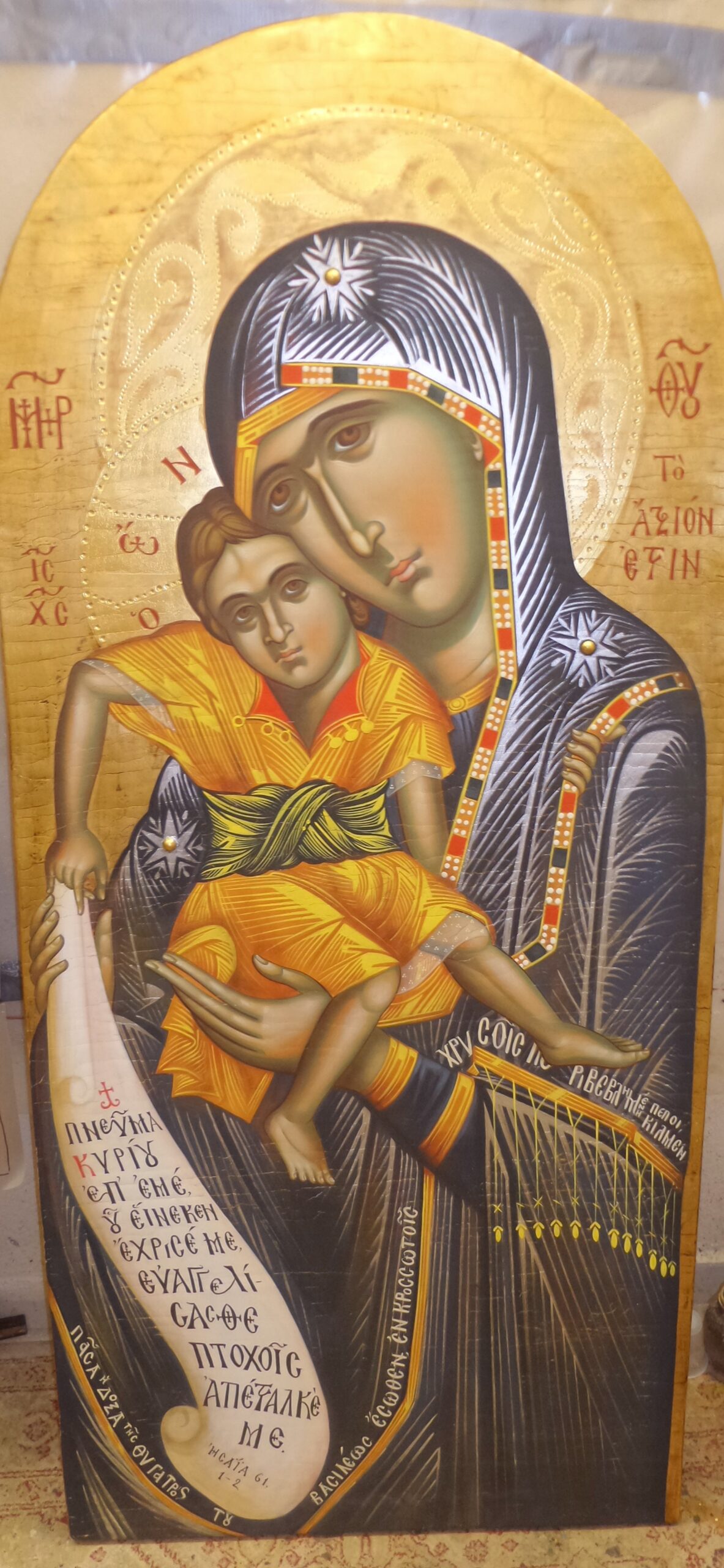We choose the best materials according to the ancient tradition of Byzantine iconography.Thanks you very much!