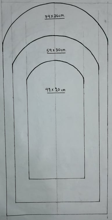 Dimensions 42x20cm, 59×30 cm, 74×36 cm.